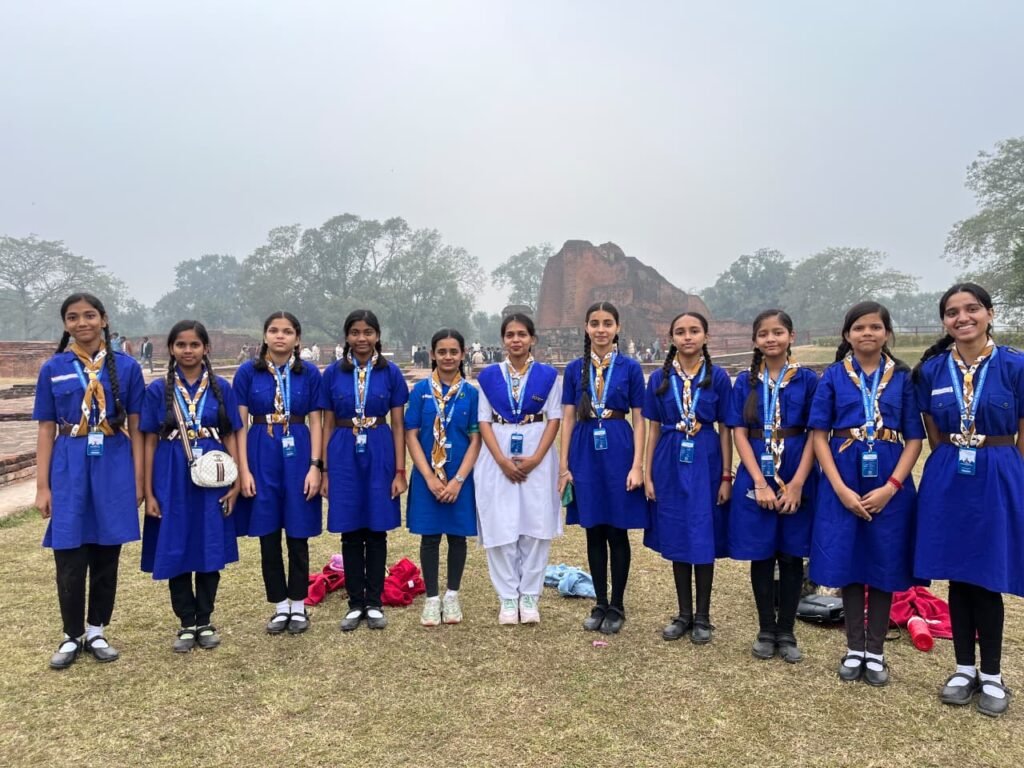 Bharat Scouts & Guides, West Calcutta successfully organized a 5 Days & 4 Nights Educational Tour to Rajgir, Bihar with 60 Scouts & Guides. The tour offered rich learning through visits to Nalanda University, Bodhgaya, the Thai Temple, Rajgir Nature Safari, and Dashrath Manjhi Pahad, highlighting history, spirituality, environmental awareness, and determination. An All-Faith Prayer and shared meals reinforced unity, peace, and sisterhood. From Seth Soorjamull Jalan Balika Vidyalaya, 10 Guides—Sumaira Ali, Kaushiki Singh, Amrita Singh, Kashish Chawla, Prerna Shukla, Sujata Das, Sandhya Singh, Simran Hela, Zainab Samir, and Umme Habiba—actively participated, making the camp a memorable experience of learning beyond classrooms and character-building in the true spirit of Scouting and Guiding.